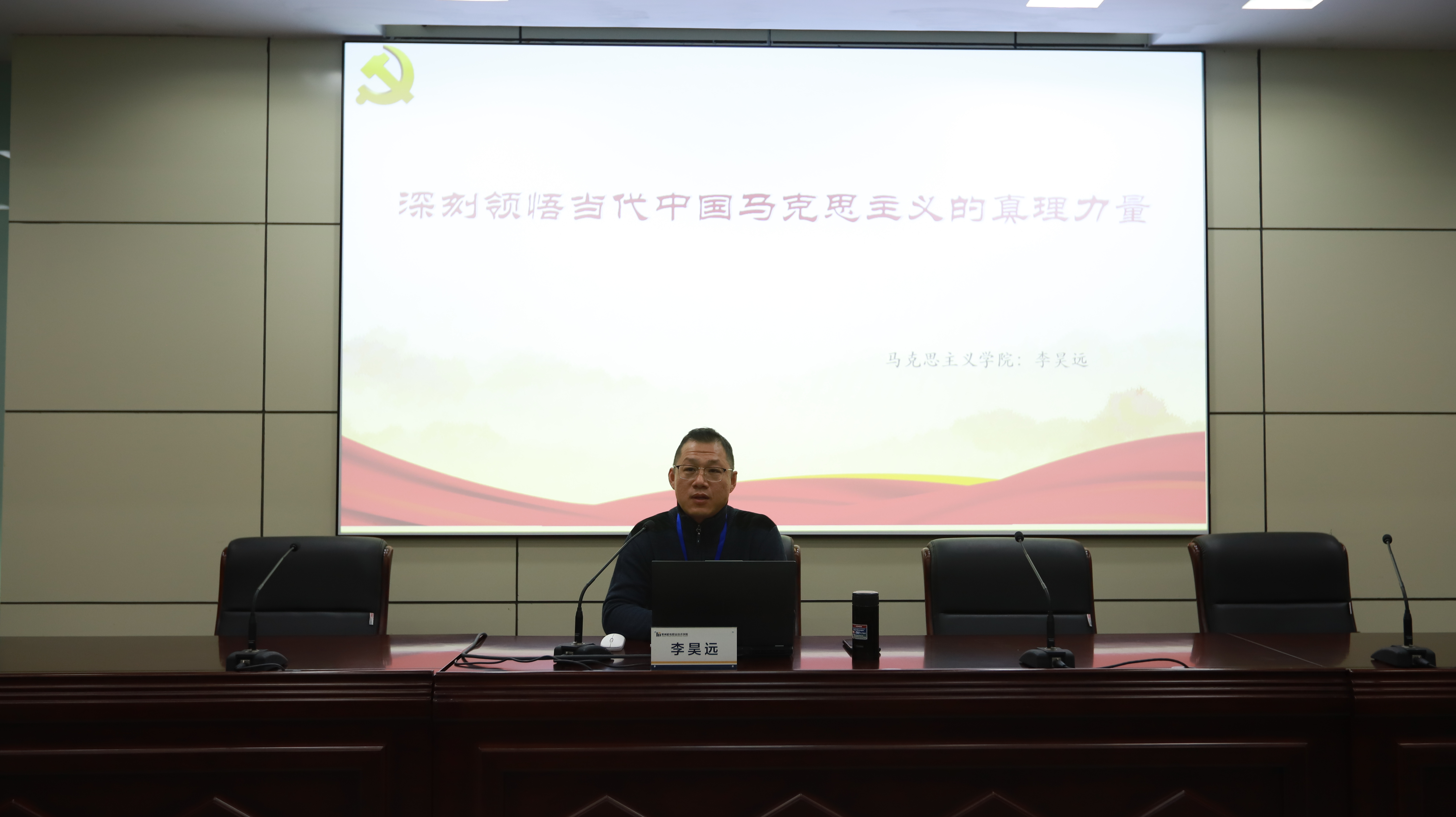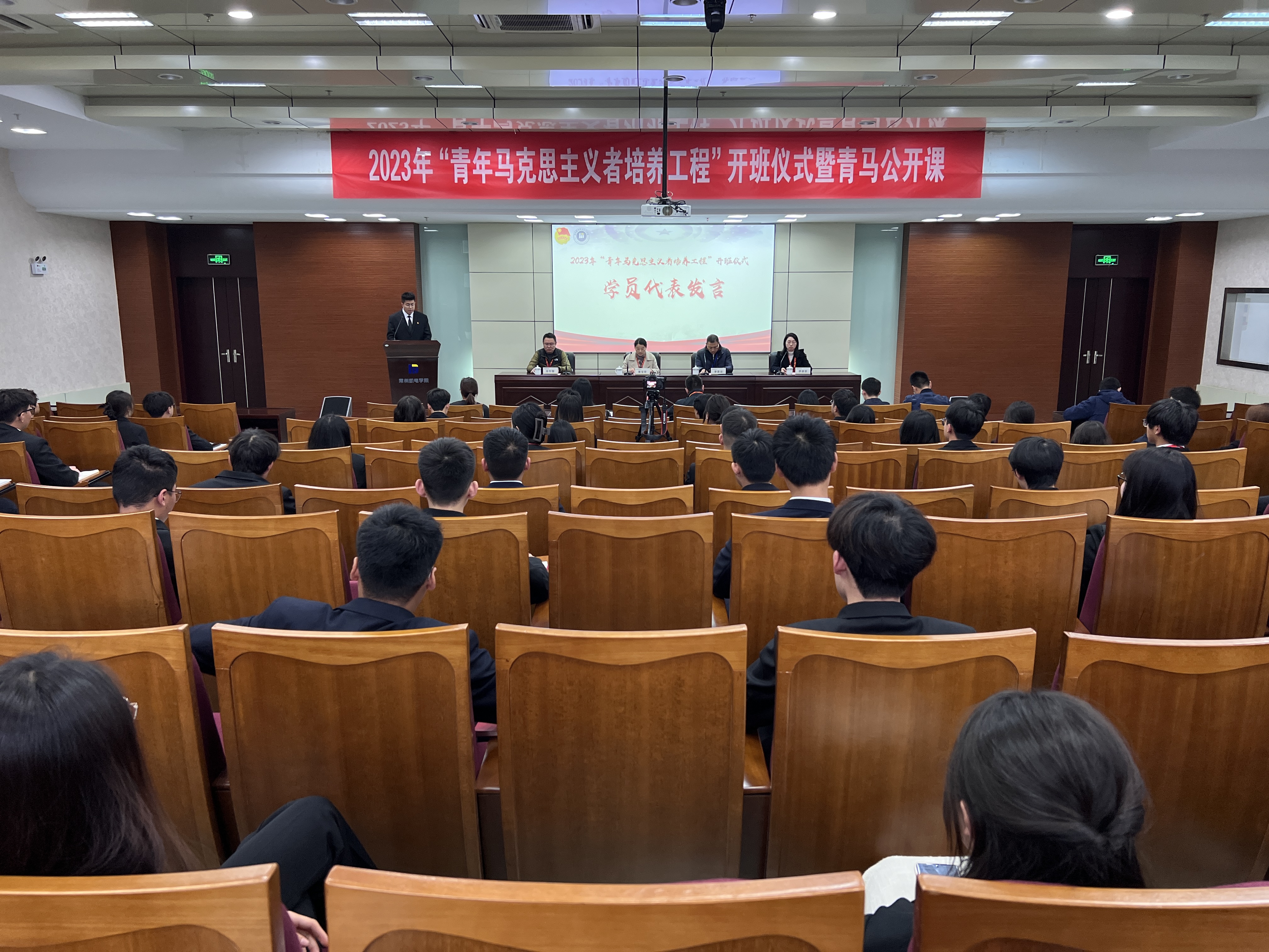 开班仪式结束后,马克思主义学院院长李昊远教授为学员们作了题为“深刻领悟当代中国马克思主义的真理力量”的青马公开课,从科学真理的实践伟力、思想伟力、引领伟力、动员伟力四个方面,为大家讲述了国家过去五年工作和新时代十年伟大变革、习近平新时代中国特色社会主义思想的世界观和方法论、以中国式现代化推进中华民族伟大复兴的使命任务等内容。