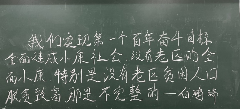 同学们通过粉笔板书,书写了对国家资助育人体系和各级资助政策的认识,分享了自己受资助的励志成才故事。同学们纷纷表示:“要怀揣这份感恩之心勇毅前行,勇于肩负起‘传递助人筑梦的中国爱心,讲好学生资助的中国故事’的责任与担当,为资助育人代言!”