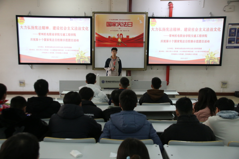 12月3日,正值“国家宪法日”设立十周年之际,为深入学习贯彻习近平法治思想,大力弘扬宪法精神,增强法治观念,交通工程学院开展“12.4国家宪法日——大力弘扬宪法精神,建设社会主义法治文化”校级示范主题团日活动。