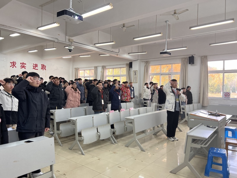 一次宣誓,一个承诺。入党积极分子樊书桥带领全体共青团员,右手握拳,进行宪法宣誓。团委书记陈云带领全体共青团员共同签署守法承诺,激发青年团员的使命感和责任感,希望同学们自觉做宪法精神的坚定信仰者、积极传播者、忠实实践者,用行动捍卫宪法的权威。