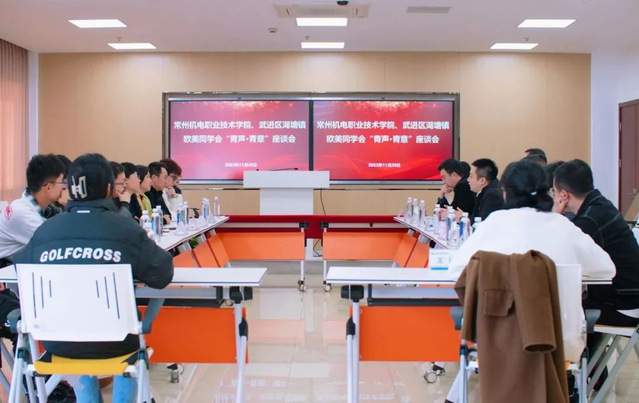 11月29日,常州机电学院、武进区湖塘镇欧美同学会“青声•青意”座谈会活动在丰登楼新职业教育教师发展中心举办。学校党委学生工作部、学生工作处处长刘娟芳,党委组织部、统战部副部长王玲,欧美同学会会长尚德强及会员代表,产教合作部、招生就业办公室副部长王国顺,湖塘镇党委副书记陶兴龙,湖塘镇党委委员、总工会主席强霏,湖塘镇欧美同学会会长刘鲸及会员代表,以及学校学生代表等16人参加了活动。