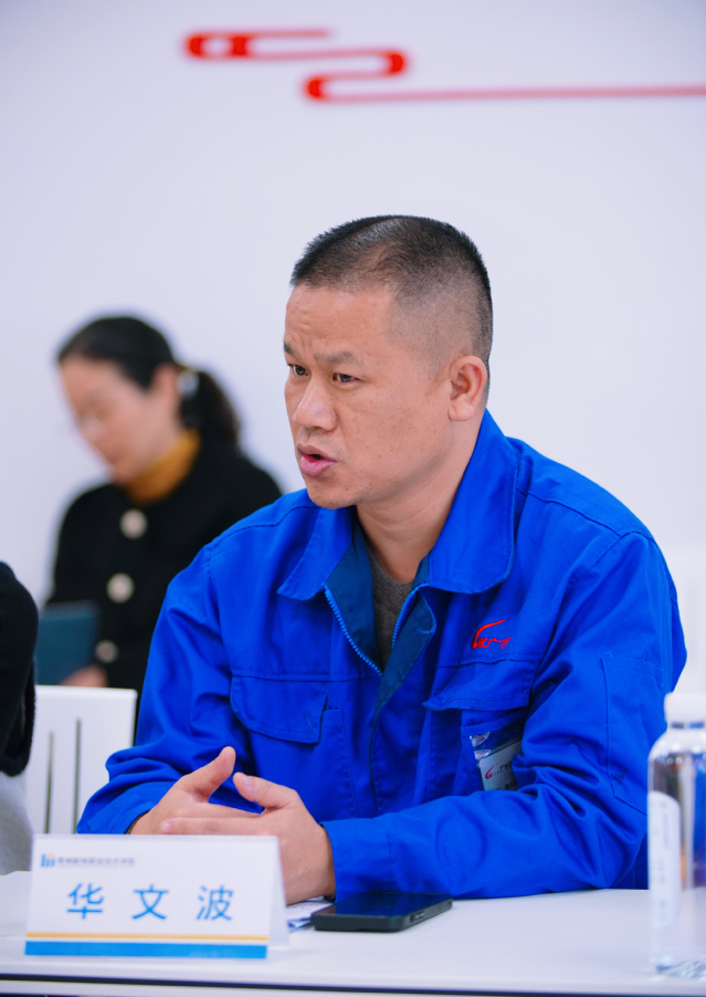 武进光宇花辊机械有限公司“金牌工匠”华文波作经验交流分享。工匠代表的宣讲深入浅出地讲述了自己在工作中是如何克服各种困难与挑战的。同时,他还积极鼓励同学们从细节开始,刻苦学习、不断提升自己,勇敢树立追梦的勇气和信心。他精彩的分享展示了执着专注、敬业奉献、追求卓越的精神品质,诠释了劳动精神和工匠精神的深刻内涵,引发在场师生的共鸣。