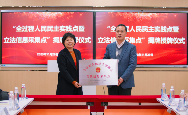 湖塘镇作连续两届被确立为常州市基层立法联系点,为进一步扩大、畅通基层立法的渠道,广纳教师和学生群体对诸如高质量发展职业教育等内容相关法律法规的意见建议,湖塘镇党委副书记陶兴龙为我校授予“全过程人民民主实践点暨立法信息采集点”。