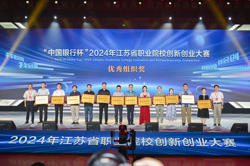 7月29日至30日,“中国银行杯”2024年江苏省职业院校创新创业大赛省级决赛在南京交通职业技术学院举办。本届大赛共有208所职业院校、9.8万支团队、36万余人次报名参赛,378个项目晋级决赛。我校共推荐13个作品,经过激烈角逐,最终荣获一等奖1个、二等奖7个、三等奖5个。其中,“胜马——无线信号屏蔽干扰设备领导品牌”项目荣获省赛总冠军,取得该项赛事新突破,学校蝉联“优秀组织奖”。