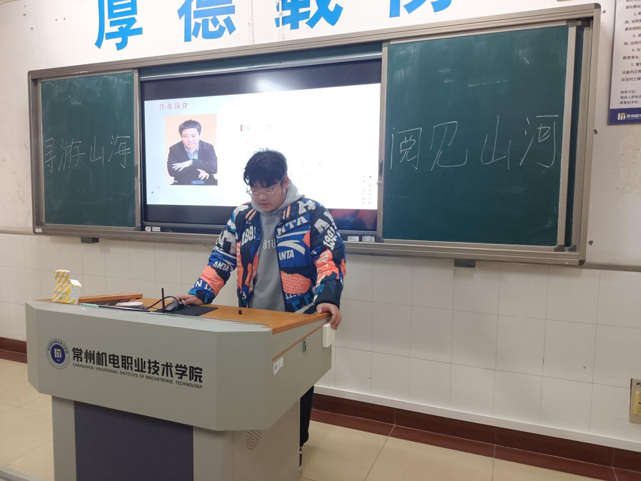 11月27日下午,新能源汽车2333班在西教225教室开展了以“寻游山海,阅见山河”为主题的读书交流活动,旨在培养同学们的阅读兴趣,让同学们能够爱上阅读。