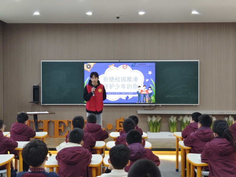 普法堂上,交通学子用生动而平实的语言,从“什么是校园欺凌”“校园欺凌的表现”“校园欺凌的后果”“如何应对校园欺凌”四个方面展开宣讲,通过互动、小组讨论,以案说法等形式,使小朋友们深刻感受到校园欺凌的严重性,引导小朋友们学会如何预防和面对校园欺凌。
