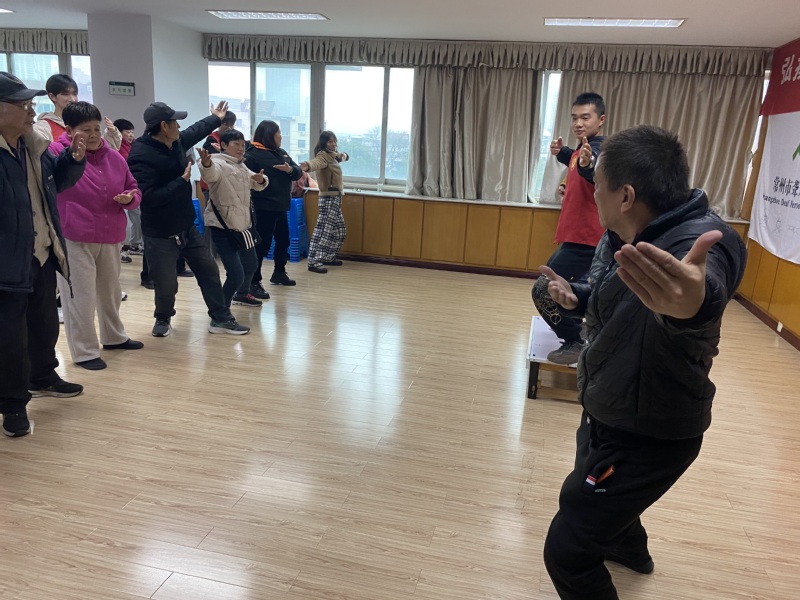 活动中,志愿者表演了手语舞,他们的青春舞步洋溢着青春活力,给听障人士带来欢笑与活力。期间志愿者们带领听障朋友领略传统养身功法“八段锦”,力求强健体魄,养脾养胃,更好地调理残障人士的身心健康,帮助他们积极地面对生活。