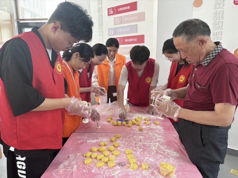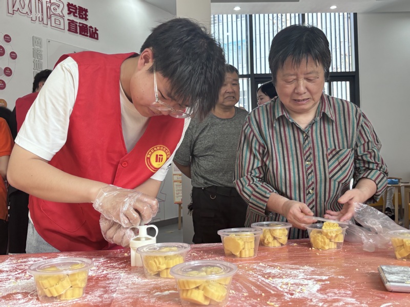 宣讲后,志愿者和爷爷奶奶一起“转战”爱心厨房,在“520”这个充满爱的日子,一起齐心准备材料共同制作爱心糕点——绿豆糕。浸泡绿豆、打成泥状、和成面团、放入模具,冷却成型……志愿者和老人们分工明确,忙得不亦乐乎,场面其乐融融。最后,志愿者们将做好的绿豆糕送给奋战在一线的劳动者,给他们的生活增添了别样的色彩。