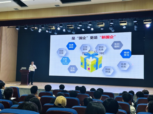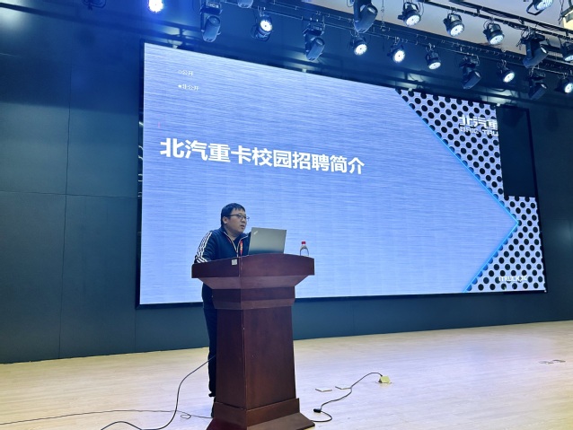 北汽重卡韩征从招聘角度向同学们说明了当前的就业形势。他强调,同学们的职业发展才刚刚开始,在未来的职业道路中,努力成为一名优秀的员工。韩征还详细介绍了北汽重卡的公司概况和未来发展职业目标。北汽重卡作为一家“新国企”,集合了全球领先创新技术,致力于打造重卡行业的元宇宙。随后深入分析了公司的地理位置、环境、员工活动、文体活动和公司荣誉等方面。同时,他还详细介绍了苏南直销公司的业务,包括客户开发、车辆销售、订单管理、线上销售等,本次招聘会提供了50个岗位,为同学们的职业选择提供了明确的方向。