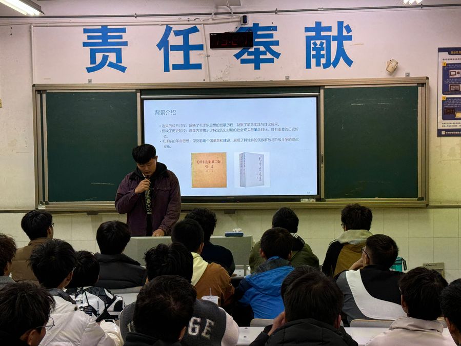 活动中,同学们学习了从陕北根据地抗战到抗日战争胜利时期的党史,在施宇航的解读下,大家看着一份份历史文献,听着一个个英勇的抗战故事,重温了那段难忘的红色记忆,接受着理想宗旨、作风纪律的党史党性教育洗礼。