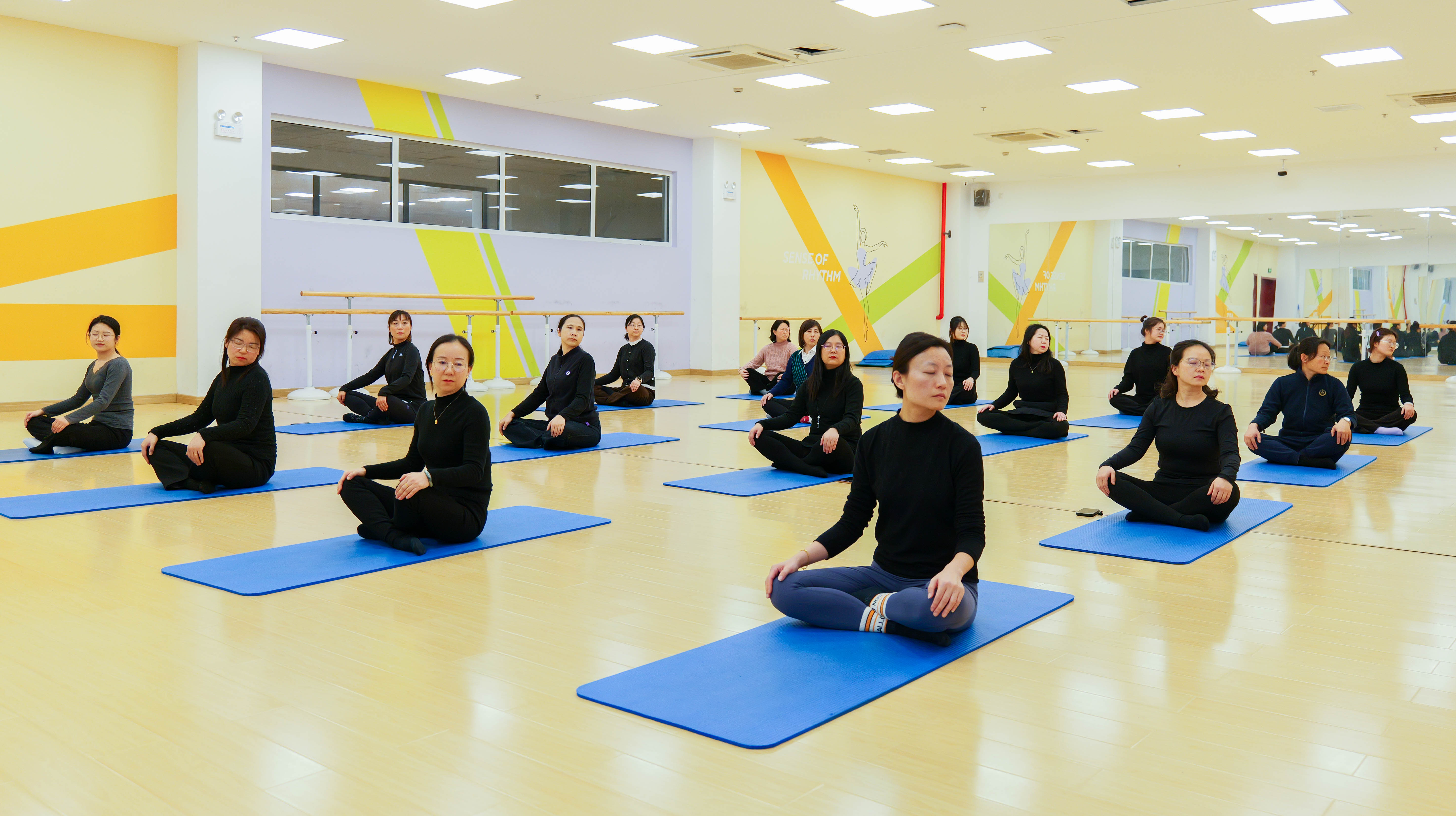 活动不仅有瑜伽体式的练习,还特别设置了冥想放松环节。在轻柔的音乐声中,女教职工们闭上眼睛,专注于自己的呼吸,抛开外界的纷扰,在内心深处寻得一片宁静的港湾。