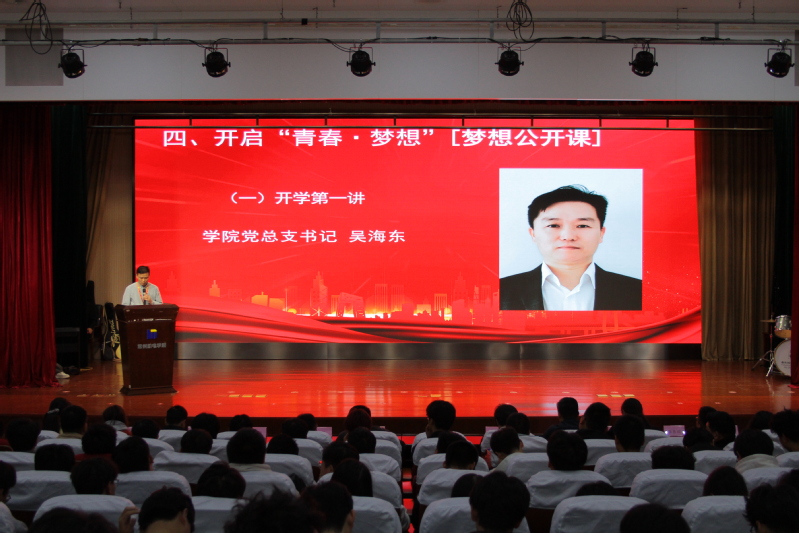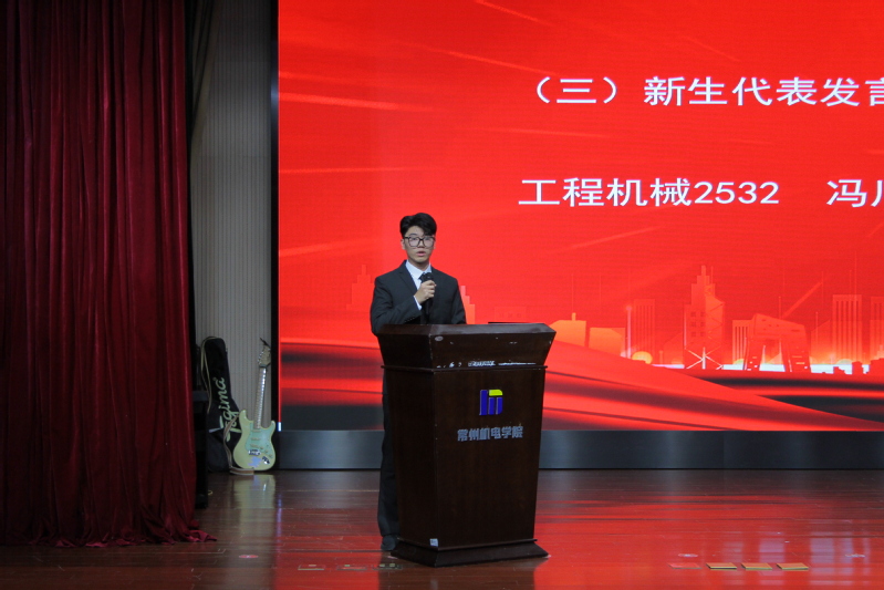 全体师生齐唱国歌,庄严旋律中家国情怀绵长传递。活动以新生入校视频温情开篇,帧帧入学场景唤醒共同记忆。学院党总支书记吴海东带来“开学第一讲”,与新生共话高等职业教育的时代使命、专业发展的战略价值,探寻新时代工匠的实践路径,为新生点亮前行灯塔。新生班主任代表陶宇佳登台分享育人初心,表达了愿为新生成长保驾护航的责任使命和对新生未来发展的殷切期盼。新生代表工程机械2532班冯川畅谈大学规划,尽显新生群体的昂扬风貌。