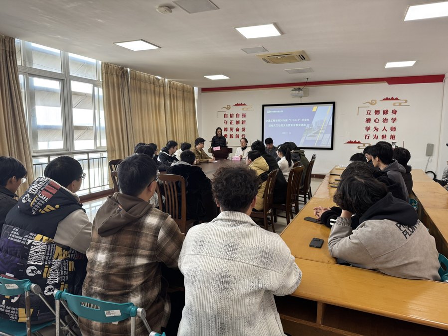 为切实推进2026届毕业生平稳衔接校园与职场,11月26日交通工程学院在善为楼421召开2026届“2.5+0.5”毕业生顶岗实习动员大会暨安全教育讲座。学院党总支副书记李兵、常州站专职指导教师王秀梅、产教合作部工作站站长宋永乾、学院辅导员叶娟出席会议,2026届相关专业毕业生全员参会。