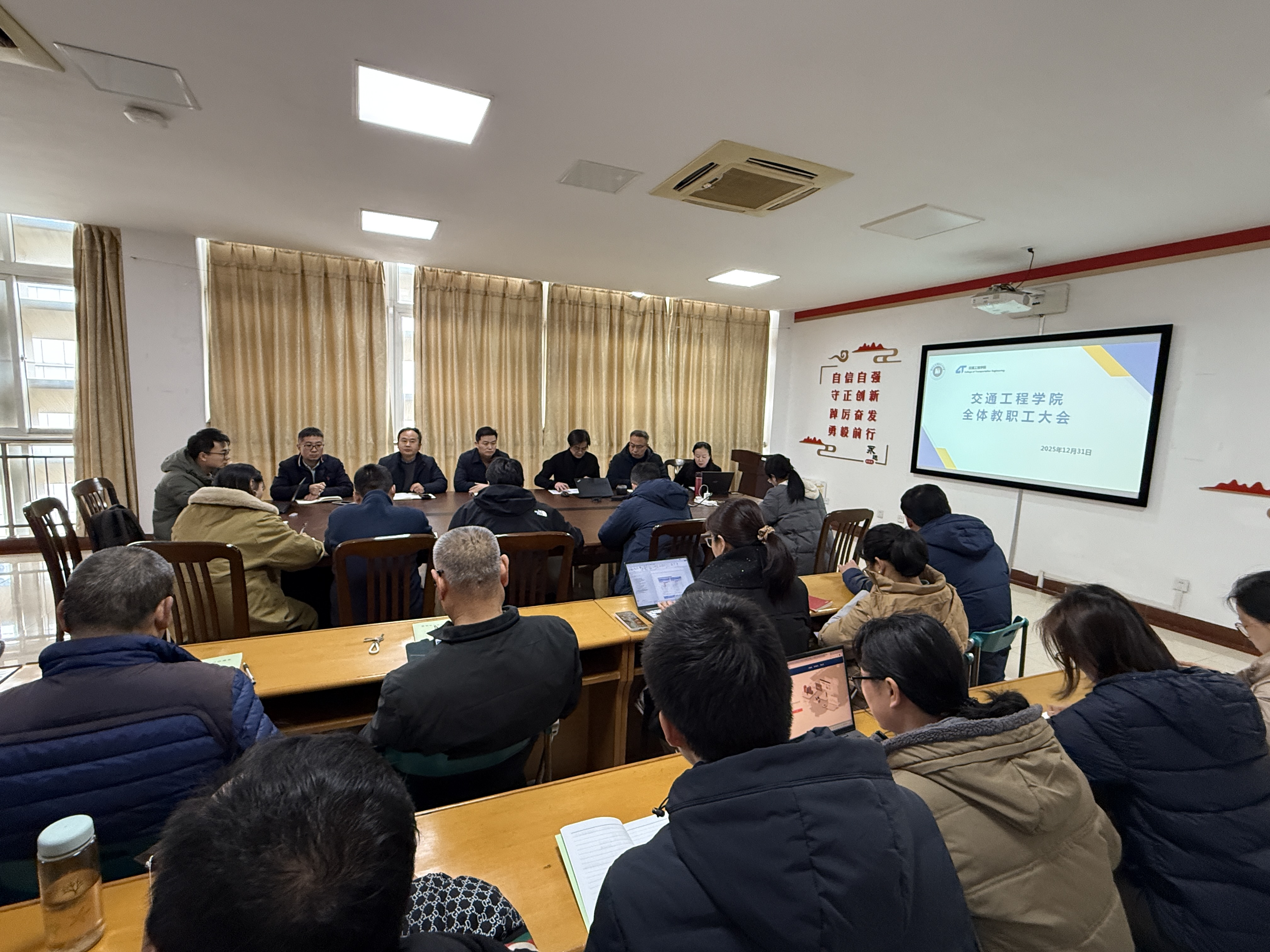 为全面总结过往工作成效、明晰财务运行状况、部署未来发展任务,2025年12月31日,交通工程学院在善为楼421召开了全体教职工大会,学院党总支书记吴海东、院长张波及全体教职工出席会议。会议由学院分工会主席王秀梅主持。