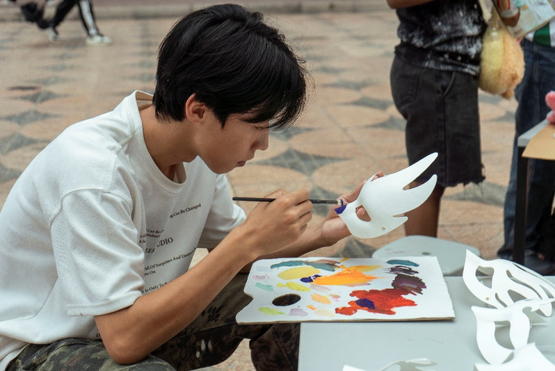 前期筹备中,学院依托线上社群精准预热,严格筛选10个特色摊位,并开展专项培训确保活动有序开展。活动现场,书籍、文具、手作饰品等闲置物品在诚信交易中焕发新生。毕业主题摊位更以文创书签为载体,将学长学姐的祝福融入校园记忆。同学们以空白书签为画布,或描绘教学楼剪影,或书写励志语录,在志愿者指导下让毕业祝福在校园流动。此外,情绪面具DIY体验以艺术疗愈心灵,一张张色彩斑斓的情绪面具映射出当代学子的内心世界。