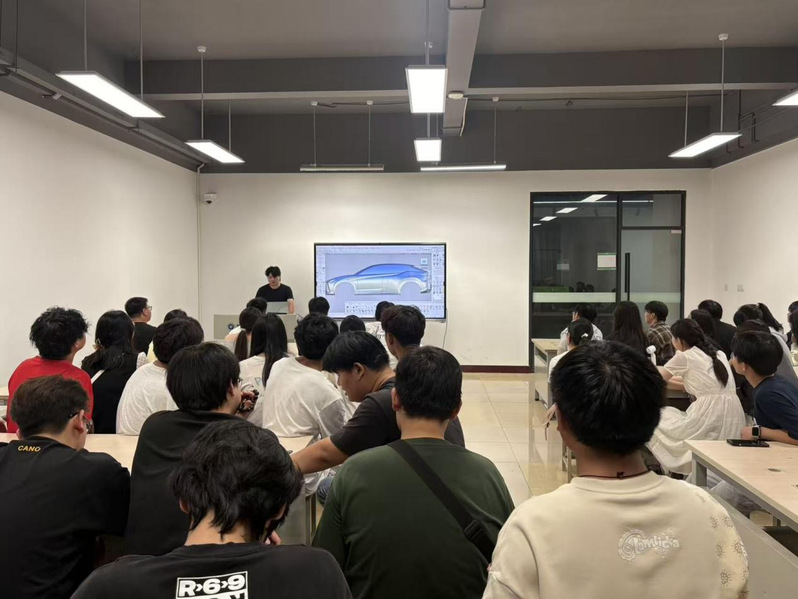 分享会上,彭坤学长结合自身从校园到企业快速成长的经历,详细剖析了汽车设计行业,尤其是新能源汽车领域的就业形势、岗位能力要求及职业发展路径。他通过展示真实项目案例,将专业软件技能、设计流程与市场需求紧密结合,为同学们提供了极具针对性的求职能力指导。彭坤学长告诉大家,中国新能源汽车产业正处在技术变革与市场扩张的黄金时期,这为工业设计专业的学子提供了前所未有的机遇和广阔的舞台。他鼓励在座新生要珍惜在校时光,夯实专业基础,积极关注行业发展,并勇于将创意与构想付诸实践,未来必定能在中国新能源汽车产业的宏伟蓝图中留下属于自己的奋斗足迹。
