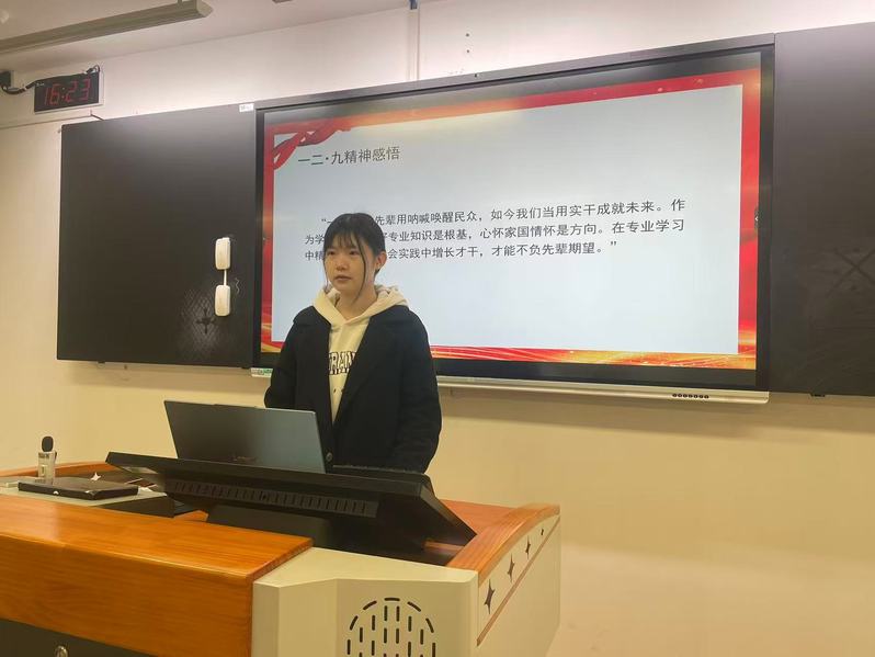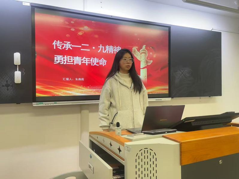 在感悟分享环节,仲露动情发言:“一二・九运动中的先辈们,用振聋发聩的呐喊唤醒沉睡的民众;如今的我们,当用脚踏实地的实干成就美好未来。作为青年学生,扎实掌握专业知识是安身立命的根基,胸怀滚烫的家国情怀是前行路上的方向。唯有在专业学习中精益求精,在社会实践中增长才干,方能不负先辈的殷切期望。”