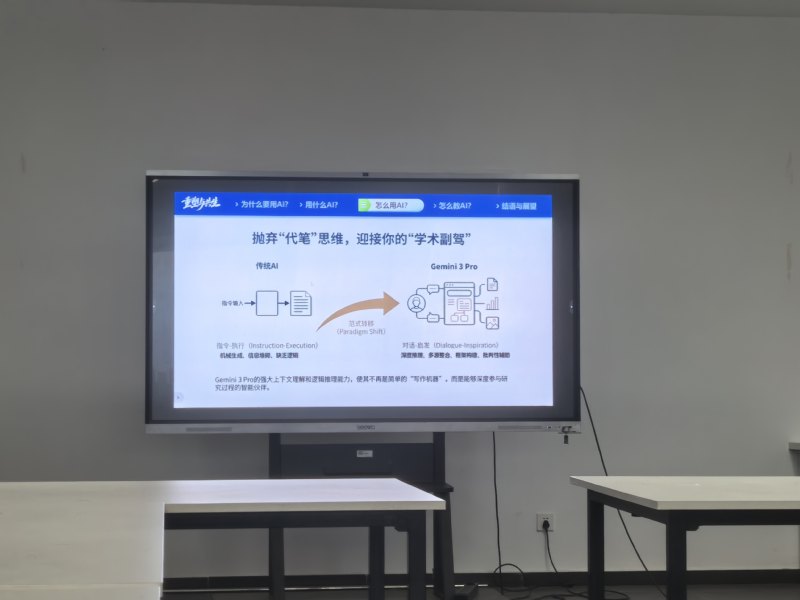 讲座伊始,主讲人从国家战略责任与行业生存需求的高度出发,指出设计教育正面临着属于自己的“iPhone时刻”。面对AIGC技术的迅猛发展,教师如何利用Gemini、Nanobanana、Veo3等前沿工具提升课堂质量与科研效率,成为了本次分享的焦点。