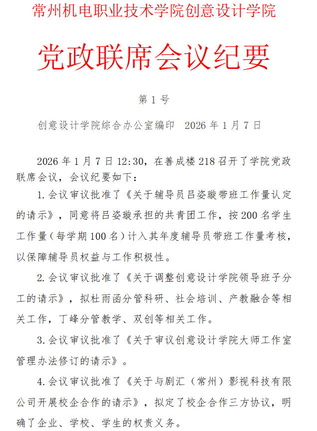 2026年第1号党政联席会议纪要