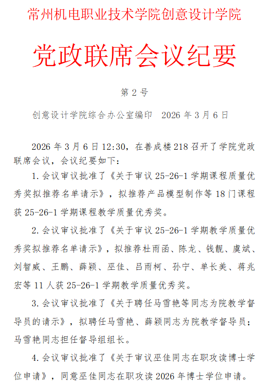 2026年第2号党政联席会议纪要