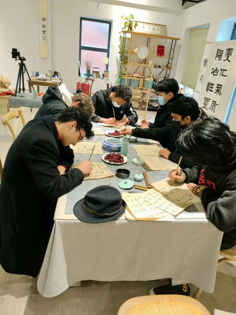 Qiu Chao, Secretary of the General Party Branch of the foundation department, Gao Shuhong, president of the International Education College, Wang Zhisong, vice-president, and Xu Zhouping and Fan Xu, teachers of the College of Creative Design, participated in the activity of ‘Writing the Spring Festival Couplets and Welcome the Spring Festival’ to celebrate the Chinese Lunar New Year with international students.