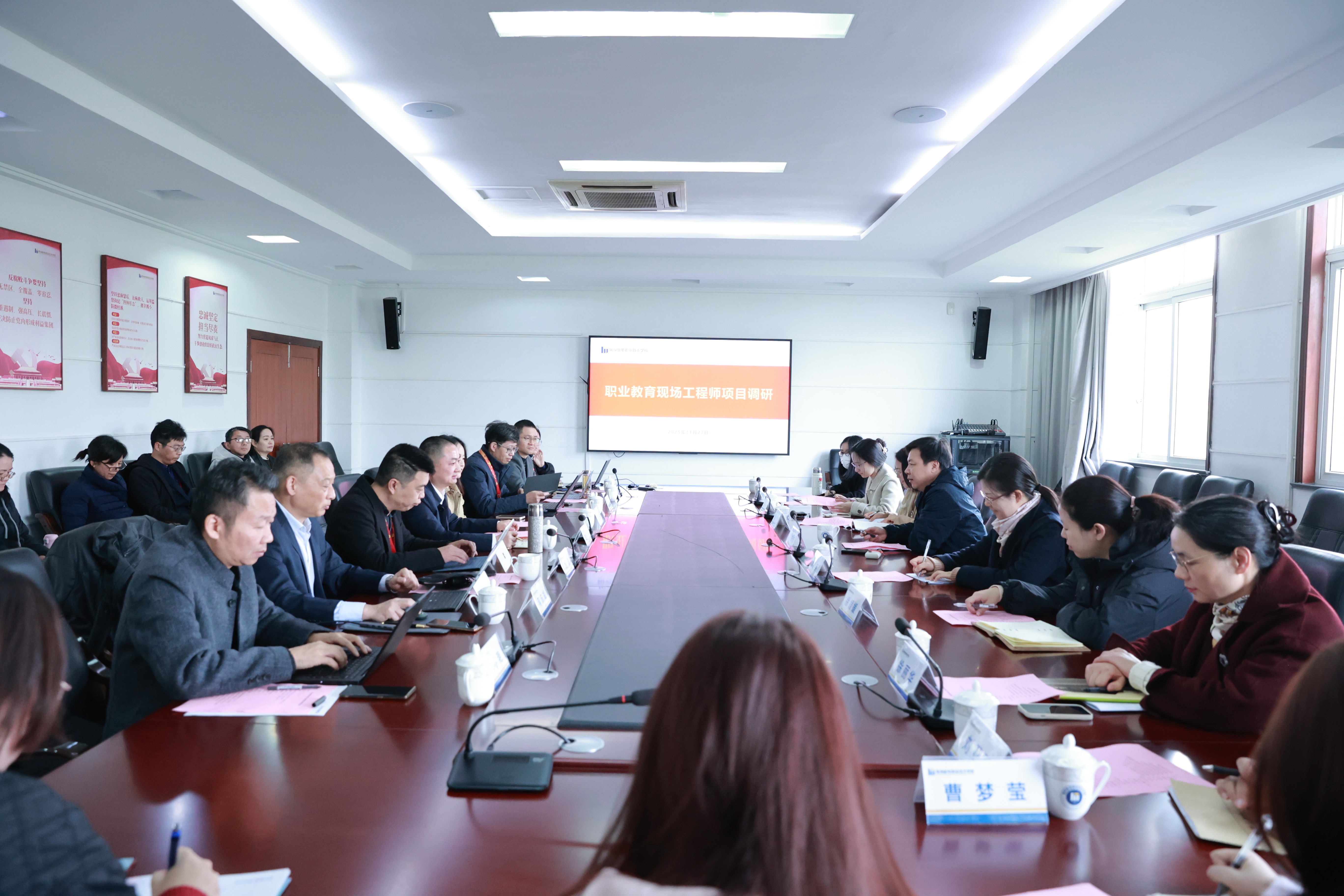 2025 年 11 月 27 日上午,江苏省教科院职教所专家团队赴我校开展职业教育现场工程师项目专项调研。本次调研以 "挖掘项目建设成效、破解运营难题、提炼推广经验" 为核心,通过现场考察、集中汇报、分组座谈等形式,深入了解学校在现场工程师培养领域的实践探索与创新成果。
