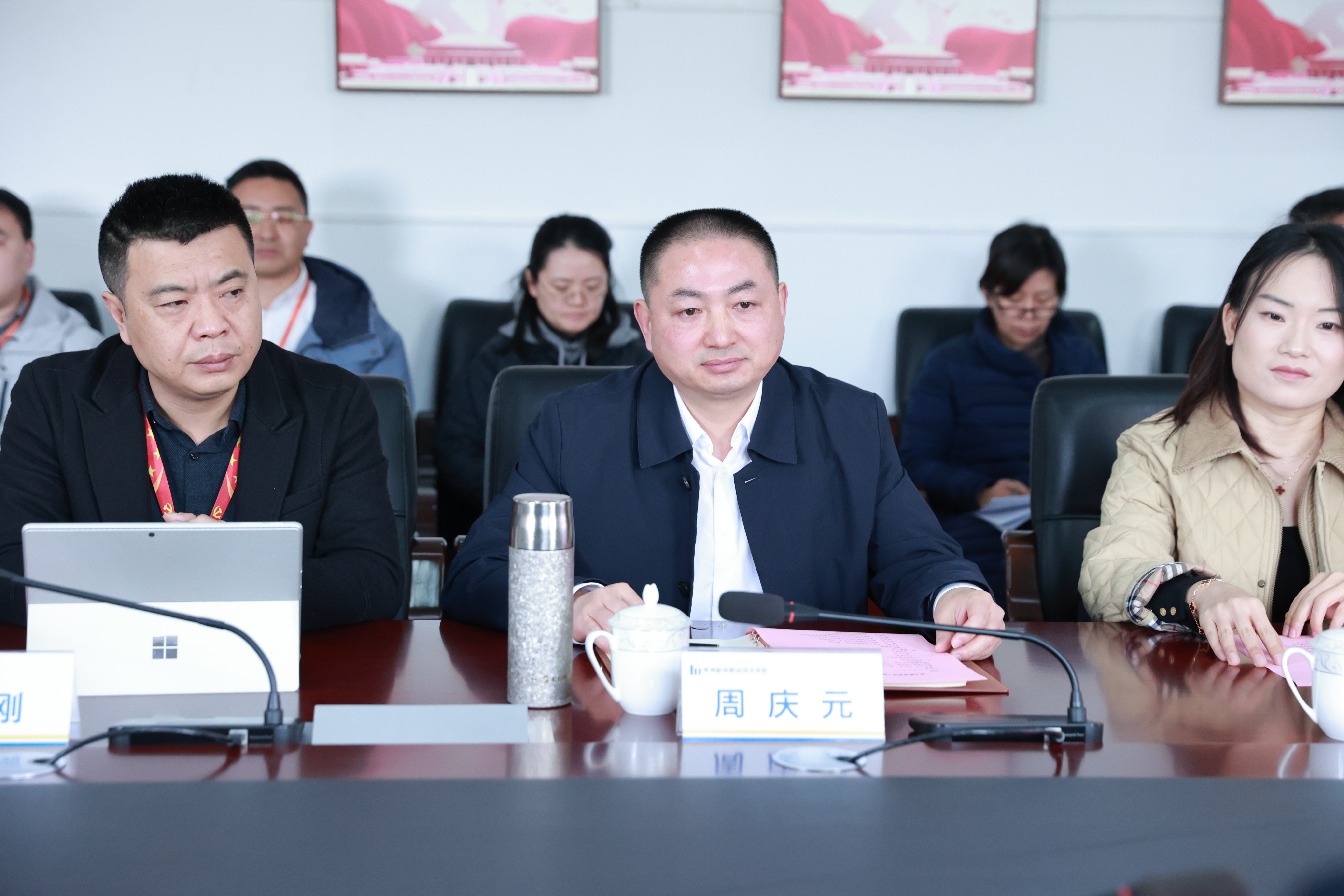 周庆元校长致辞。他介绍了目前现场工程师班的办学情况以及规模,提出学校当前正围绕 "升本创建、溧阳新校区建设" 等战略任务,持续深化现场工程师项目建设,未来将进一步加强师资队伍数字化能力培养,拓展校企合作深度,完善人才培养质量评价体系,力争打造职业教育产教融合的示范样板。