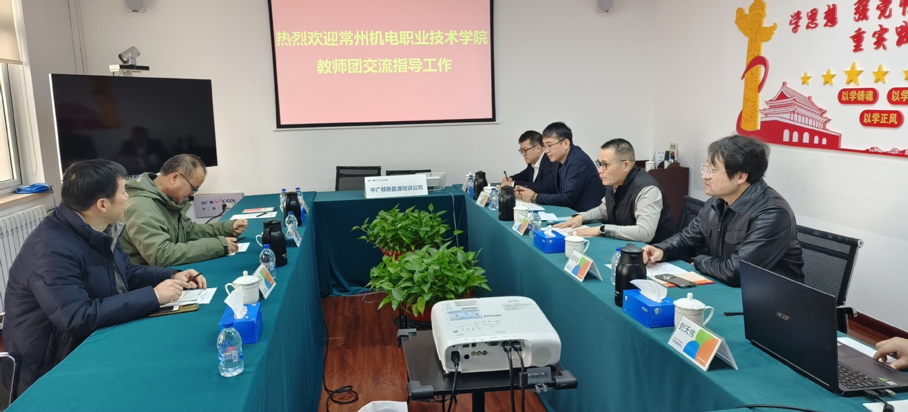 为深入贯彻落实常州市“新能源之都”建设战略部署,紧密对接地方产业升级与技术创新需求,常州机电职业技术学院聚焦于服务区域经济发展,开设了新能源装备技术专业。该专业自设立之初,即以“植根产业、服务地方、培育工匠”为使命,致力于培养高素质技术技能人才。为学习行业顶尖培训经验,精准把握产业前沿技术动态与人才标准,切实提升专业建设水平与人才培养质量,2025年12月1日,我校新能源装备技术专业负责人周英华副教授率专业骨干教师张尧、葛朝阳一行,专程前往位于天津市的中广核新能源培训有限公司进行深度调研与交流学习。