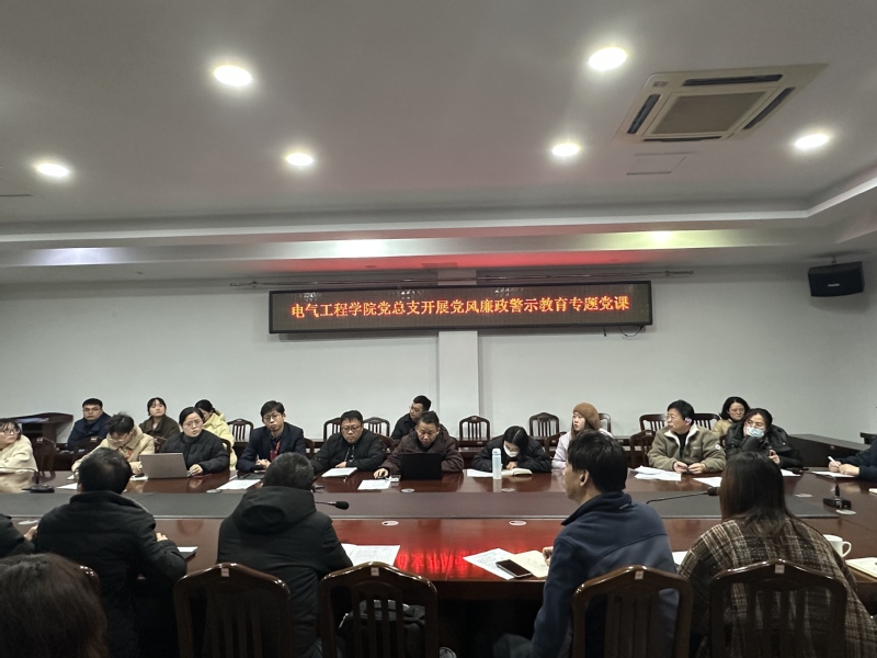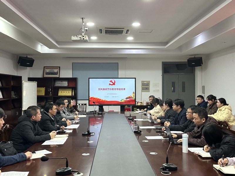 为深入贯彻全面从严治党要求,筑牢党员干部廉洁从教思想防线,12月17日,电气工程学院组织开展党风廉政警示教育专题党课。学院领导班子、全体党员教师及新入职年轻教师和关键岗位工作人员参加学习,以理论学习、案例警示、责任落实为主线,推动党风廉政建设走深走实。本次活动由党总支书记周斌主持,党总支纪检委员谢小敏主讲。