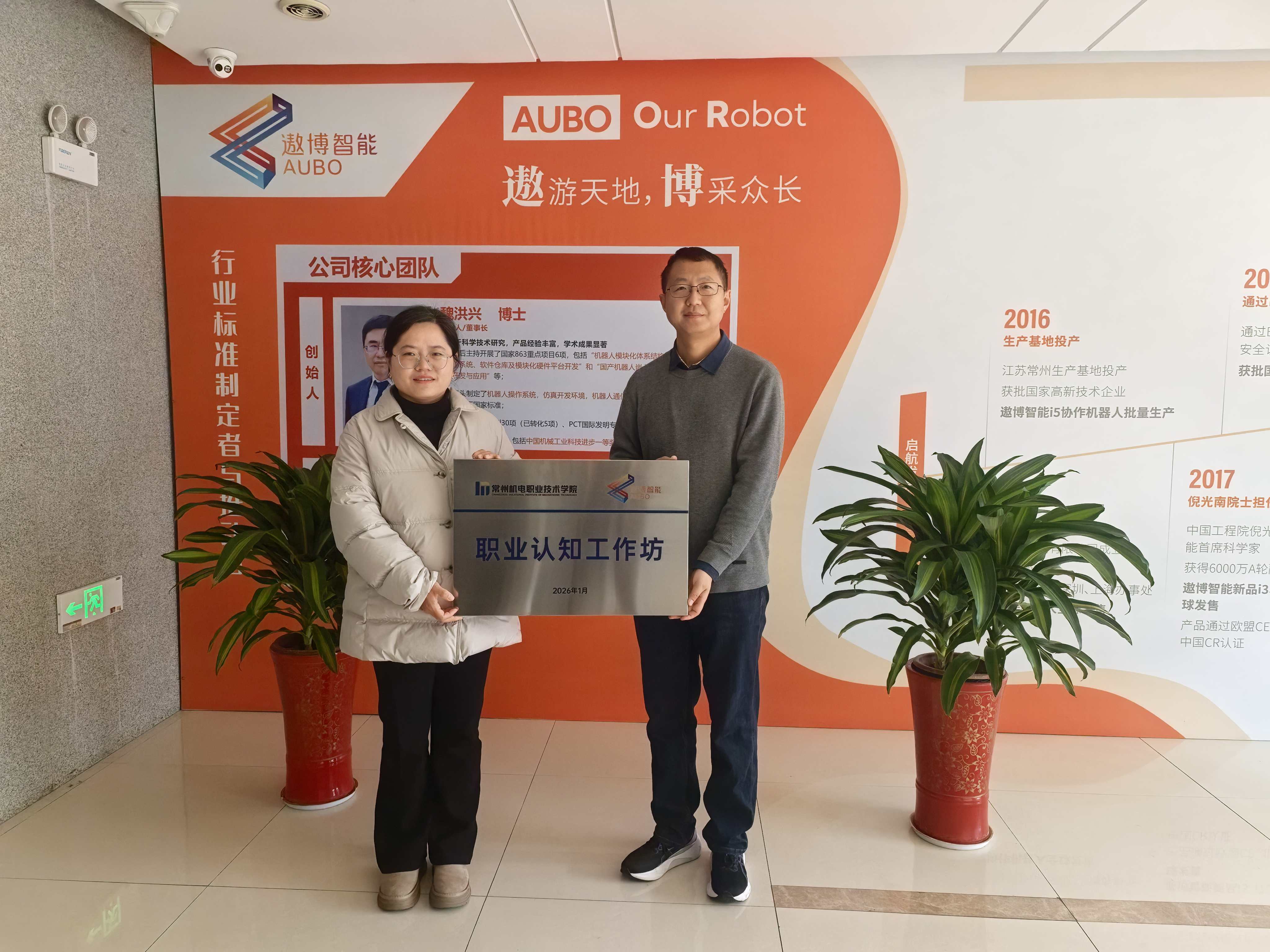 电气工程学院组织师生赴遨博(江苏)机器人有限公司开展职业认知暨授牌活动 发布时间:2026-01-09 文章来源:电气工程学院 访问次数:10 为深化产教融合、拓展校企合作深度,帮助学生直观了解专业前沿动态与行业发展前景,1月8日,电气工程学院副院长谢小敏带领智能机器人专业负责人束攀峰、张紫霞、吴超、贾丽娟及2431级学生代表等20余人,赴遨博(江苏)机器人有限公司开展职业认知活动,并举行“职业认知工作坊”授牌仪式。 抵达企业后,在遨博(江苏)机器人有限公司区域经理乔飞的热情接待与全程陪同下,师生一行深入企业智能生产车间实地参观学习。乔飞经理结合生产线上的核心设备,向师生们详细讲解了工业机器人的核心技术原理、关键零部件制造、整机装配调试等全生产流程,重点介绍了企业自主研发的协作机器人在汽车制造、电子加工、仓储物流等领域的应用案例。 随后,校企双方召开专题座谈会,就人才培养、技术合作、实习就业等核心议题展开深度研讨。谢小敏副院长首先介绍了电气工程学院的专业建设特色、人才培养方案及近年来在产教融合方面的成果。乔飞经理代表企业介绍了企业的发展前景以及人员需求等。双方一致同意,将在组织体系上实现互联互通,在人才培养上实现协同发力,共同探索“校企协同、岗课融合”的人才培养新模式。 座谈会后,校企双方举行了“职业认知工作坊”授牌仪式。根据约定,双方将定期组织学生赴企业开展职业认知、岗位体验、项目实践等活动,把“职业认知工作坊”打造成学生接触产业、了解行业的重要平台,引导学生早期浸润产业环境,树立正确的职业观、成才观。同时,双方还初步达成了共建实习就业基地、联合开展技术攻关等合作意向,为后续深度合作奠定了坚实基础。 此次活动的开展,不仅让学生跳出课堂局限,直观感受了专业知识在产业中的实际应用,更搭建了校企优势互补、资源共享的合作桥梁。参与学生纷纷表示,通过参观学习,对智能机器人专业有了更清晰的认知,也明确了自身的学习方向和努力目标。下一步,电气工程学院将以此次活动为契机,持续深化与行业优质企业的合作,不断创新育人模式,为培养更多适应产业发展需求的高素质技术技能人才赋能。 (供稿:贾丽娟 编辑:候 俊 审核:谢小敏 )