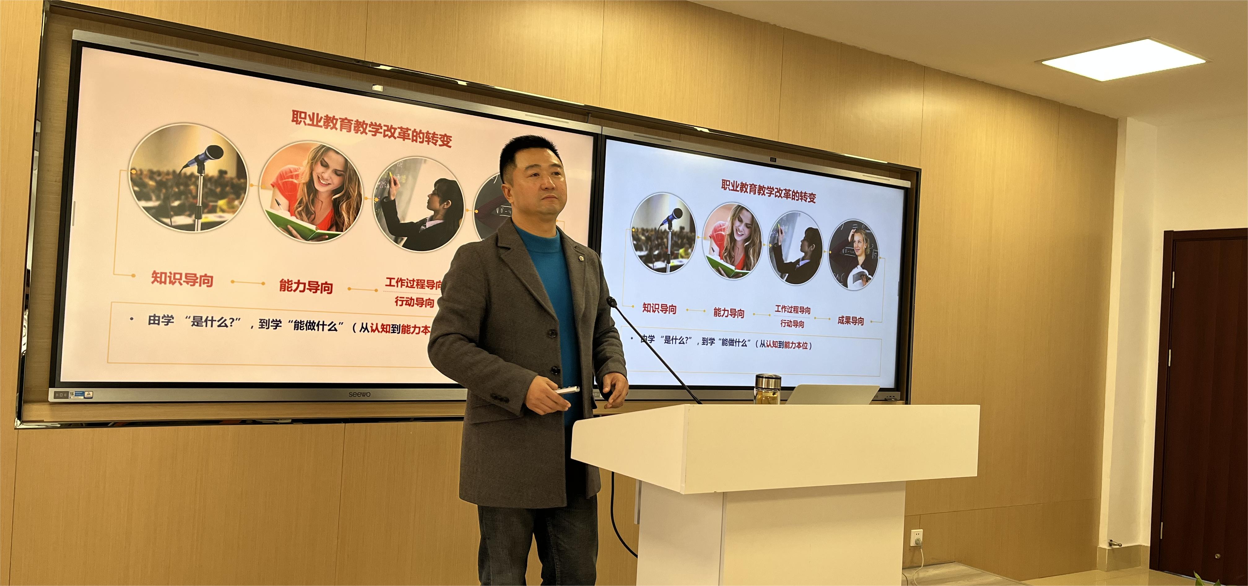 为落实《深化新时代教育评价改革总体方案》,积极推进学校人才培养质量评价综合改革项目建设,促进高质量发展,1月3日,以“基于成果导向—工作过程导向的职业教育专业开发与课程教学”的专题讲座在教师发展中心会议室举行。讲座由教务处处长吴荣主讲,兼职研究员队伍、相关职能部门及二级学院部分教师聆听了本次讲座。