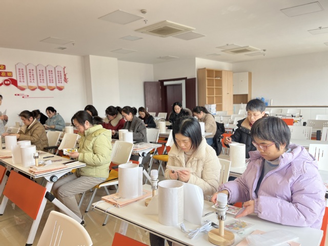 活动以“创意台灯DIY”为主题,手工指导老师首先介绍了台灯装饰的技巧和干花颜色的搭配方法。女教师们细心设计,将淡雅的小花粘贴在灯罩表面,营造出田园风格。在制作过程中,大家互相交流花色搭配的心得,工作台前充满了欢声笑语。一盏盏碎花台灯逐渐点亮,暖黄的光晕透过花瓣和布纹,映照出细腻的光影。