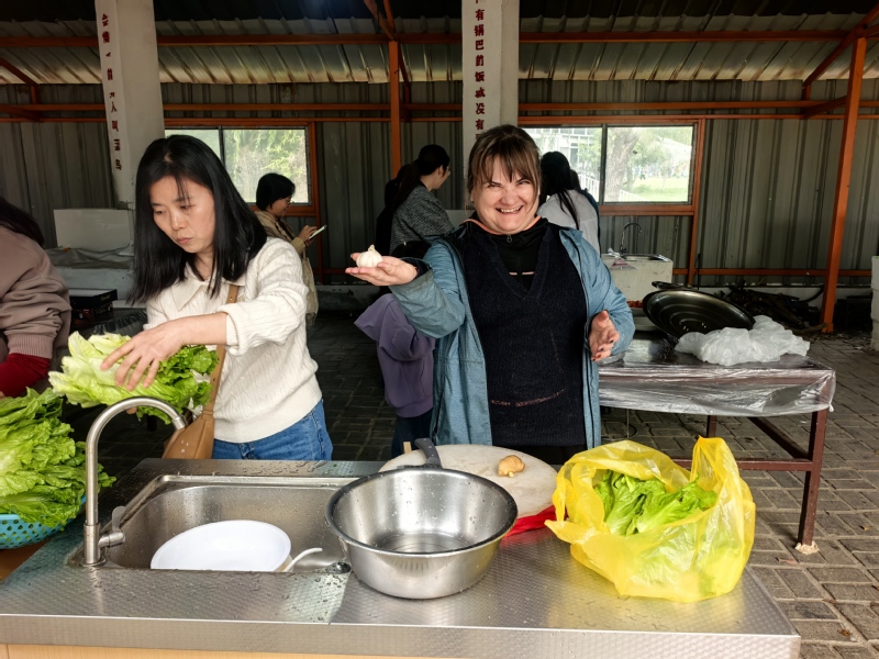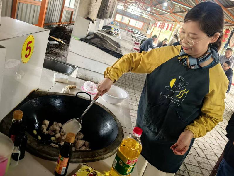 “土灶美食汇”环节。教职工分工明确、默契配合:有的将新鲜食材细致清洗、切配;有的熟练生火、调控灶温,在土灶前翻炒颠勺;还有的则忙着摆盘、准备餐具,现场炊烟袅袅、香气四溢。红烧肉的浓郁、时蔬的清爽…… 一道道家常美味在大家的共同协作下陆续出锅,教职工们围坐在一起分享美食,畅谈工作与生活,欢声笑语不断,温馨的氛围驱散了平日的忙碌疲惫。