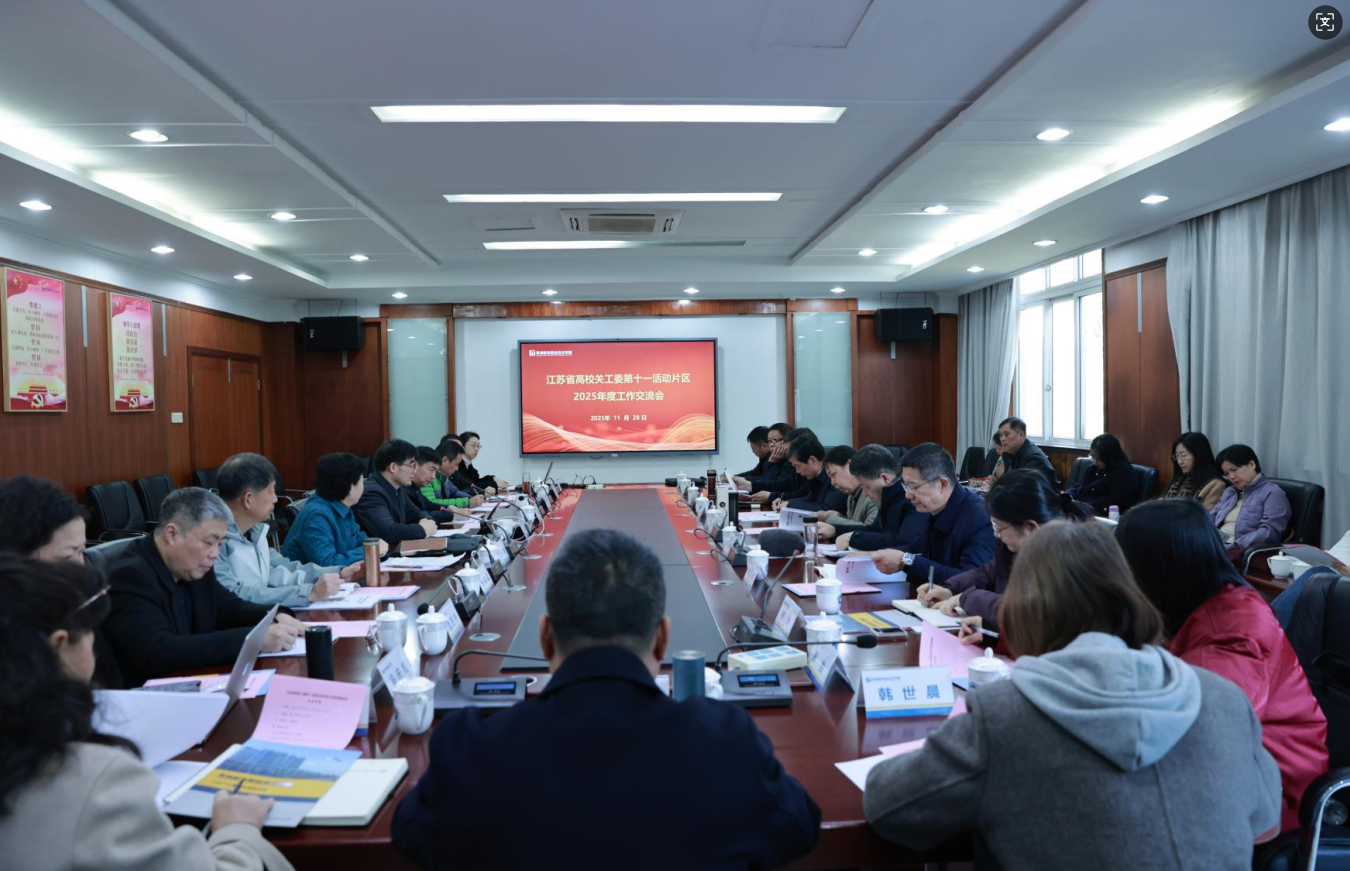 2025年11月28日,江苏省高校关工委第十一活动片区2025年工作交流调研会议在我校召开。江苏省教育厅关工委副秘书长都秀谷、李坤,我校党委书记许朝山出席会议并致辞。会议由片区第一牵头学校常州工业职业技术学院关工委常务副主任蒋新萍主持。来自片区的14所高校代表参加了此次大会。
