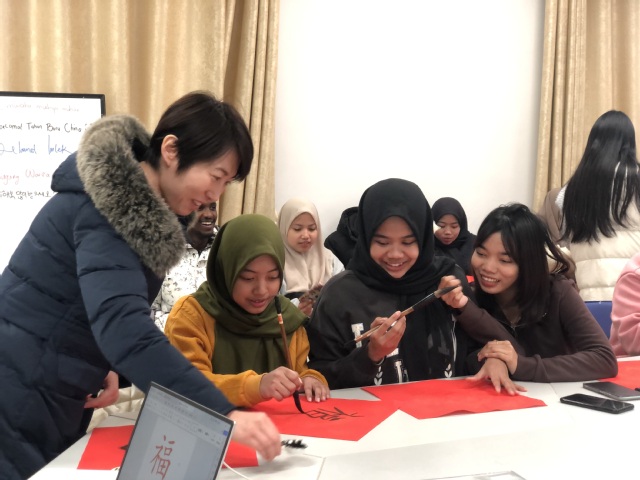 2月3日,国际教育学院为寒假期间不回家的留学生组织了一场中国小年庆祝活动,旨在让留学生们更好地了解和体验中国传统文化。活动吸引了38名留学生的参与,共同书写福字、祈福龙年。副校长周庆元参加了此次活动并致辞。