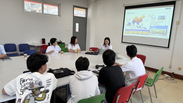 姜经理向泰国留学生简要介绍了公司的基本情况、发展历程、在泰国的核心业务等,让留学生们对企业有了整体认知。