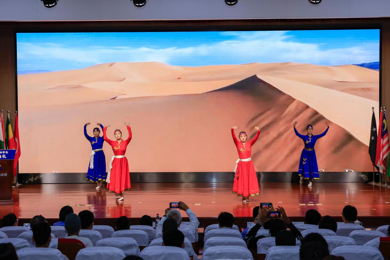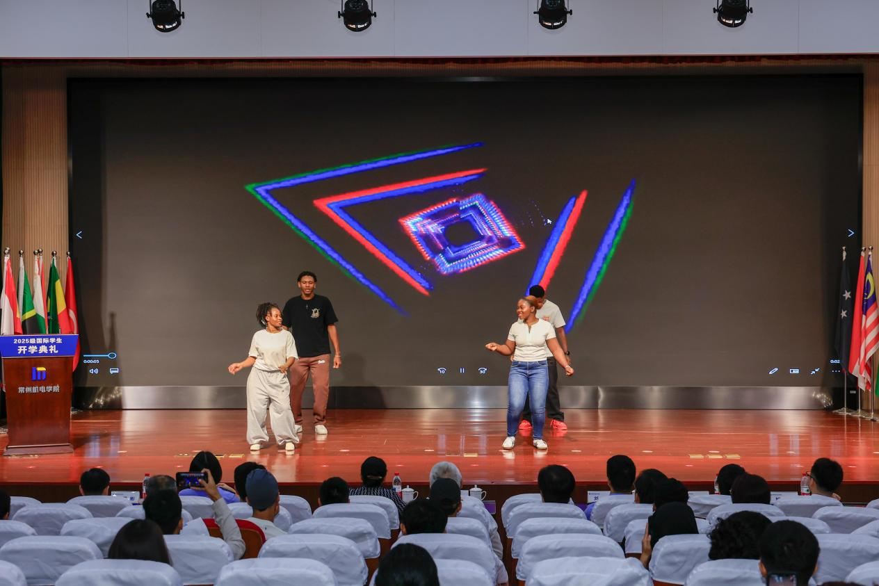开学典礼期间,常州市朗诵吟诵艺术协会张军教授朗诵了海子的代表作《面朝大海,春暖花开》,印尼学生冯娜妲演唱了中文歌曲《童话》,展现了中文的韵律之美与独特的感染力。来自泰国、阿尔及利亚、突尼斯、几内亚、蒙古、喀麦隆、加蓬、科特迪瓦的学生联袂呈现了一场精彩的歌舞串烧,彰显了多元文化的独特魅力与勃勃生机。