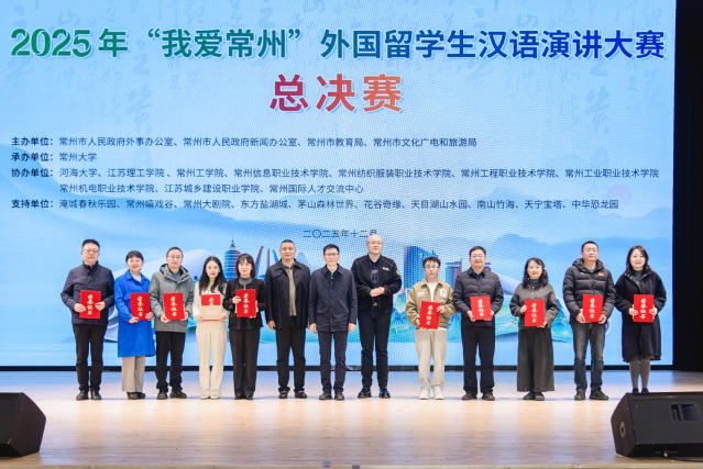 12月18日,2025年“我爱常州”外国留学生汉语演讲大赛总决赛在常州大学西太湖校区举行。经过激烈角逐,我校喀麦隆籍留学生安琪和几内亚籍留学生迪阿默分获二等奖、三等奖,学校获评“优秀组织单位奖”,充分展现了我校留学生培养工作的扎实成效与丰硕成果。