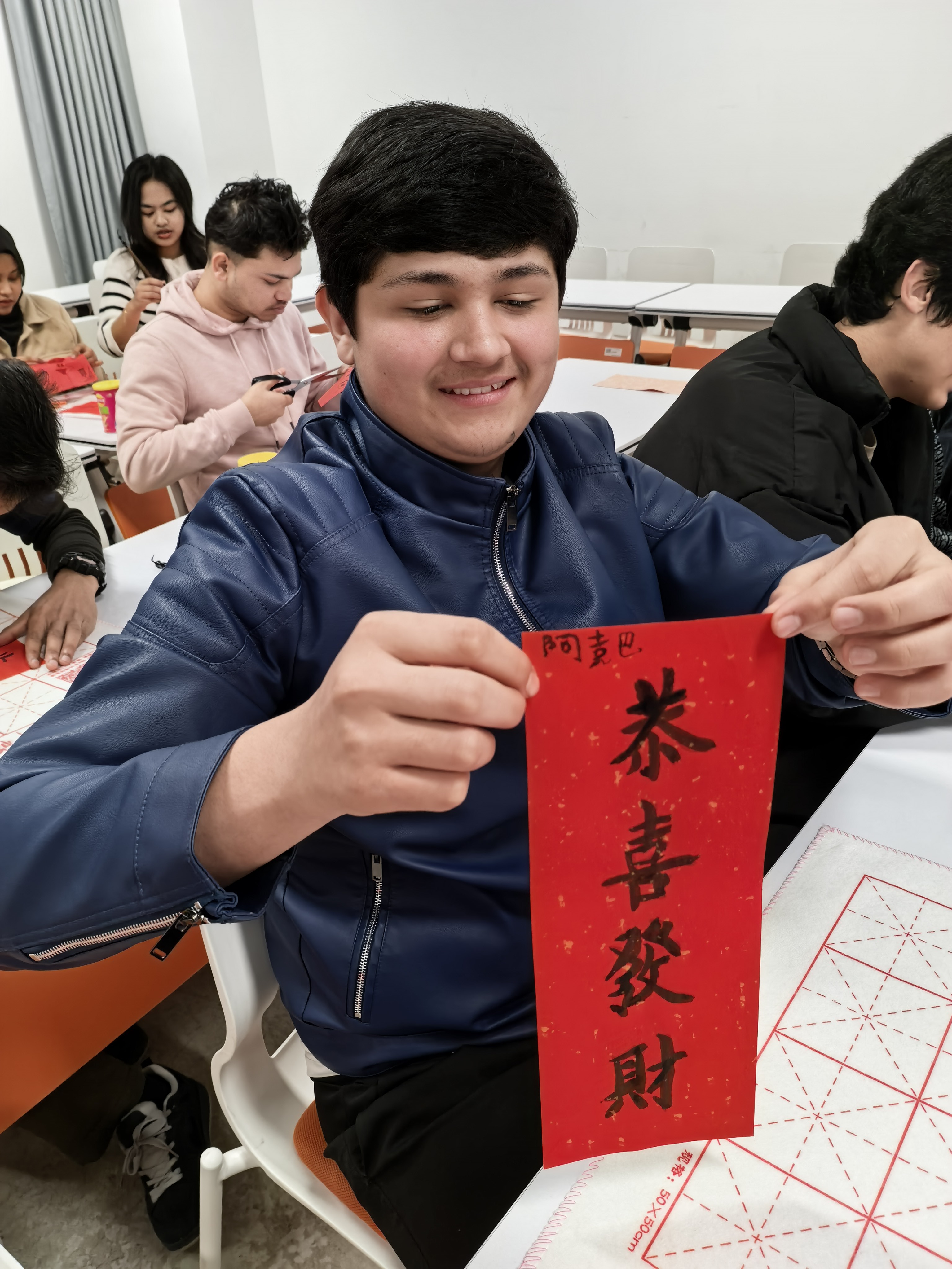 2月5日,我院举办“纸艺迎春·墨香送福”留学生春节文化体验活动。来自不同国家的留校学生齐聚一堂,亲身体验剪纸与书写春联,共同感受中国传统新春佳节的独特魅力。