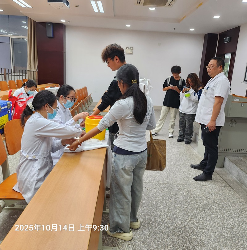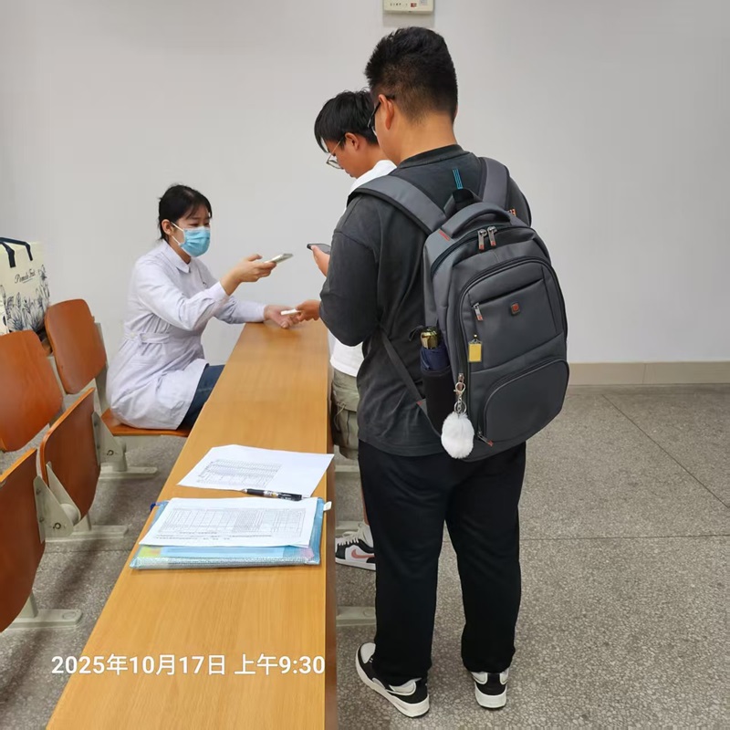 为筑牢校园结核病防控屏障,切实保障师生健康,10月14日、17日,后勤管理处在图书馆一楼阶梯教室开展了2025年新入职教职工和部分2025级新生结核菌素皮肤试验工作,本次筛查共计完成48人。