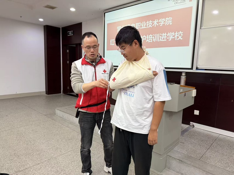 在CPR+AED(心肺复苏+自动体外除颤器)培训中,红十字会师资通过理论精讲、模型实操、分组演练等形式,详解心肺复苏操作流程、按压深度与频率标准,以及AED设备的开机、电极片粘贴、急救配合等关键技能。初级救护员培训涵盖创伤止血、包扎固定、骨折处理、气道异物梗阻急救等实用内容,结合校园常见应急场景进行案例解析,培训内容兼具专业性与实用性,帮助参训者快速掌握应急处置要点。