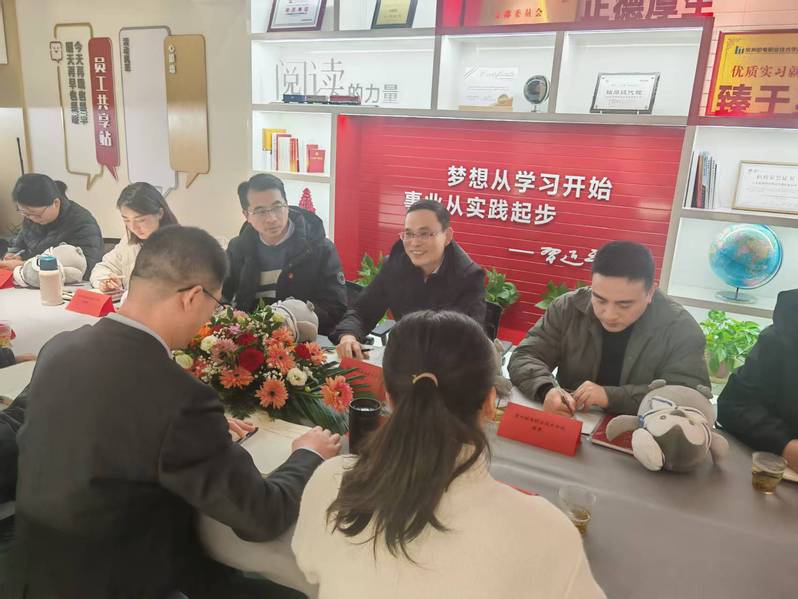 经济管理学院党总支与江苏航锦国际货运代理公司党支部开展党建结对共建活动 发布时间:2025-12-24 文章来源:经济管理学院 访问次数:12 为深入贯彻落实“党建引领促发展,校企合作共提升”的理念,进一步推动党建工作与业务发展深度融合,搭建校企协同育人、资源共享的良好平台,12月23日,经济管理学院党总支与江苏航锦国际货运代理公司党支部开展党建结对共建活动。江苏航锦国际货运代理公司总经理、党支部书记壮国强,经济管理学院党总支书记陈建新、副书记甘迎春,第一党支部书记陈勇,双方党员代表及入党积极分子共同出席了此次签约仪式。 壮国强详细介绍了江苏航锦国际货运代理公司的发展历程、业务布局及行业优势,并重点阐述了公司党支部的建设情况。分享了支部党建工作与企业经营管理紧密结合的工作路径。 陈建新介绍了学院的最新发展情况和党总支建设成效。学院围绕“以高质量党建引领高质量发展”的工作思路,聚焦学科建设、人才培养、科研创新和社会服务四大核心任务,打造了“党建+”业务四融合的特色工作模式,推动党建工作与教学科研、学生管理、社会服务等各项业务同频共振、互促共进。 在交流研讨环节,双方党员代表及入党积极分子围绕党建工作创新、校企人才共育等展开了深入交流。双方分享了党建工作中的典型案例和实践经验,探讨了校企在学生实习就业、技能培训、科研项目合作等方面的合作空间。 现场举行了产业链党建结对共建签约仪式。经济管理学院党总支与江苏航锦国际货运代理公司党支部签署了结对共建合作协议。 经济管理学院党总支积极对接区域产业链党组织,推进“党建+”业务深度融合创新,促进党建资源链上集聚,校企织密红色经纬,汇聚政校企党建先锋力量,打造党建工作品牌,引领区域经济高质量发展和高素质技术技能人才培养。