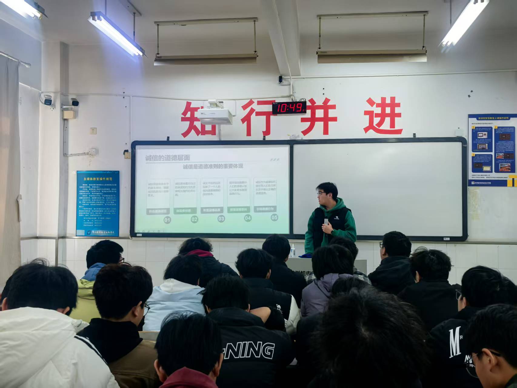 经济管理学院开展12月主题班会 发布时间:2025-12-30 文章来源:经济管理学院 访问次数:10 为营造风清气正、积极向上的备考氛围,引导学生树立正确的学习观与价值观,近期,经济管理学院各班级组织召开了以“高效复习,诚信考试”为主题的十二月主题班会。 班会紧紧围绕诚信应考的核心展开。首先,各班阐述了诚信在个人成长、学术修养及未来职业发展中的重要性与现实意义,使学生深刻认识到诚信不仅是道德底线,更是立身之本、成才之基。随后,会议详细解读了《国家教育考试违规处理办法》与《常州机电职业技术学院学生违纪处分办法(修订)》中关于考试纪律的相关条款,明确了诚信考试的具体规范与要求。通过剖析典型的考试作弊案例及其带来的严重后果,向同学们敲响了警钟,警示大家必须严格遵守考场纪律,坚决杜绝任何形式的作弊、抄袭等不诚信行为。 在互动环节,同学们踊跃发言,结合自身实际,分享了对诚信考试的理解与看法,并交流了各自的期末复习计划与高效复习方法。大家纷纷表示,将端正态度,科学规划,以扎实的知识储备和良好的心理状态迎接考试,用实际行动捍卫学术尊严,践行诚信诺言。 最后,各班在班委组织下,集体签署了《诚信考试承诺书》,郑重承诺自觉维护考试公平公正,以真实成绩检验学习成果。此次主题班会的召开,不仅强化了学生的诚信意识与纪律观念,更激发了同学们的复习热情,为学院优良学风考风的建设奠定了坚实基础。 (供稿、编辑:刘乐 审核:甘迎春)