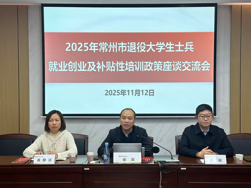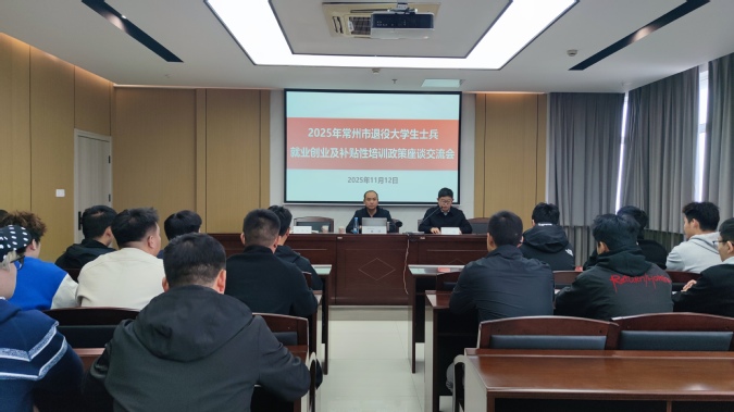 11月12日下午,常州市退役军人事务局就业创业处徐凯处长来我校指导工作,在图书馆1014会议室召开了“2025年常州市退役大学生士兵就业创业及补贴性培训政策交流座谈会”,继续教育学院、人民武装部相关人员及部分校内退役大学生士兵出席活动。