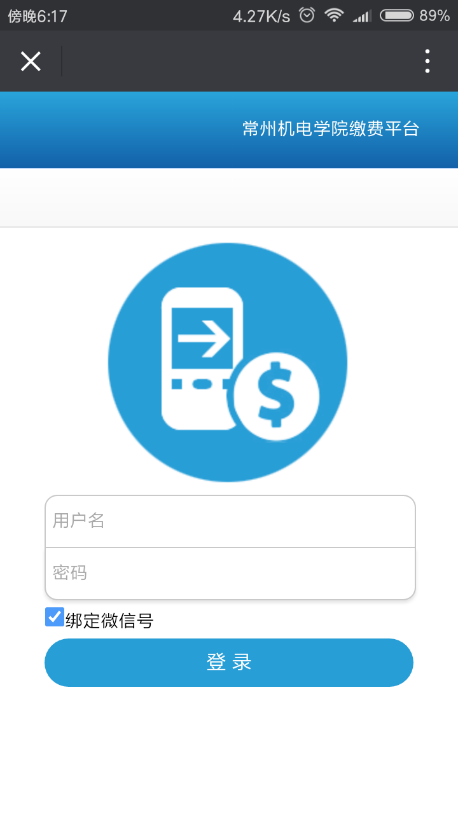 第二步,点击进入公众号,点击缴费按钮,进入缴费登录界面。