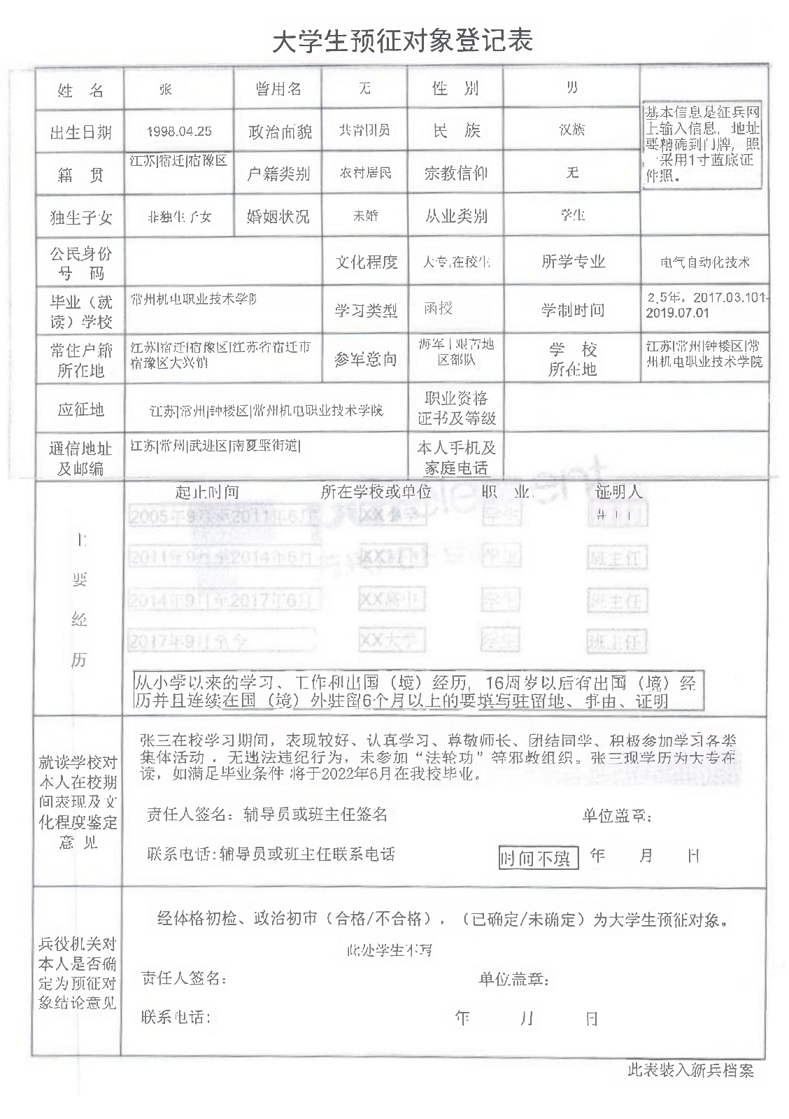 请应征报名入伍的学生本人携带以上符合要求的政审材料,在规定时间来我校办理政审。审核通过后盖常州机电职业技术学院继续教育学院公章