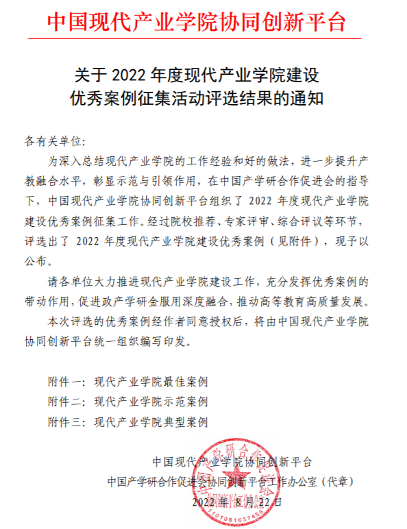 我院产业学院建设成果入选2022年度现代产业学院最佳案例