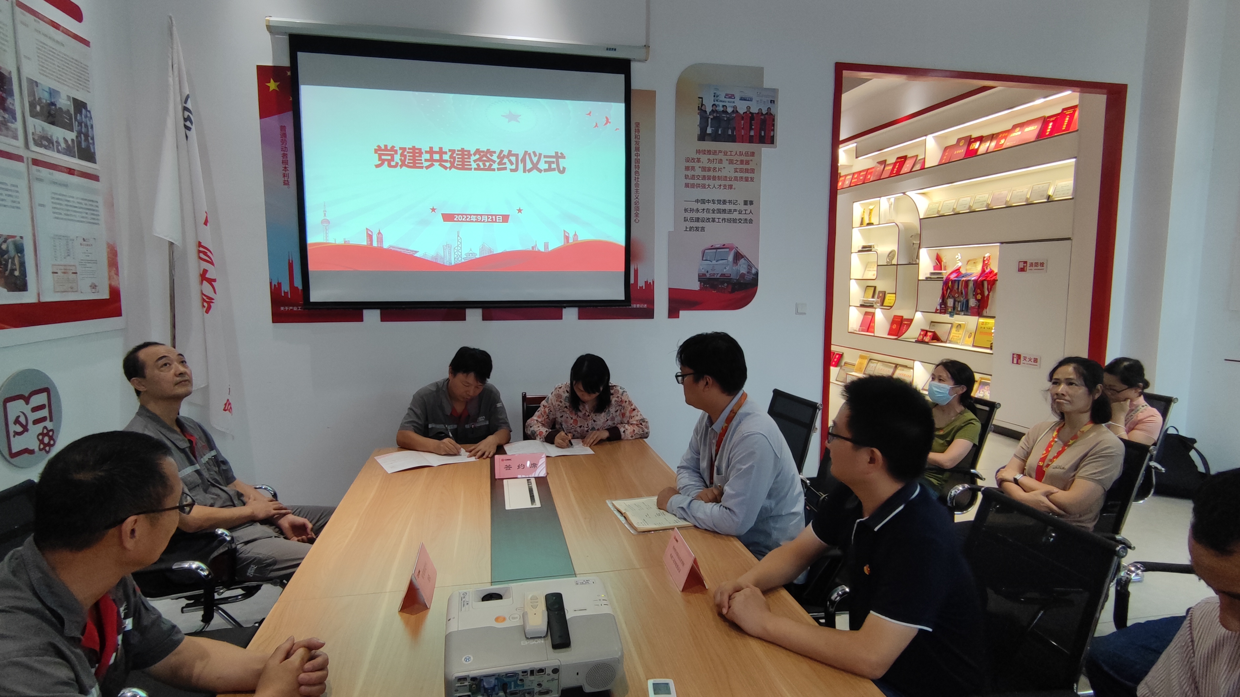 第二党支部书记史东丽同志向张忠劳模和劳模工作室代表介绍了党支部的概况,两个支部对校企党建共建问题进行了深入的探讨,在聘请大国工匠走进学校,学校教师深入企业进行科研合作等事项达成一致。支部和劳模工作室签署了党建共建的合作协议,为后续进行党建合作,产教融合,科技成果转换,思政教育案例发掘建立良好的支撑平台。