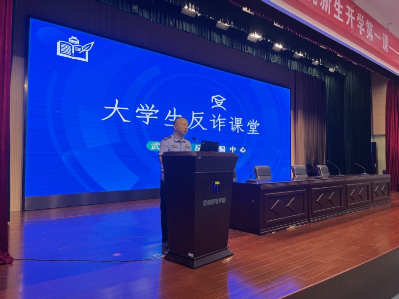 讲座伊始,机械工程学院辅导员赵威对两位警官的到来表示热烈欢迎,并强调了在当今社会环境下,大学生群体受骗案发率居高不下,提高反诈骗意识对新生们的大学生活和个人财产安全具有至关重要的意义。