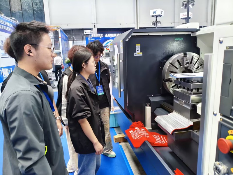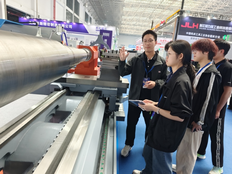 展览会现场,师生们参观了常州工博会工业母机展区,重点观摩了学校合作企业北京精雕、金石机器人、宏达数控等展出的高端装备,部分学生还与企业工程师就“精密加工工艺”“智能刀具应用”等问题展开交流。“机械之星”同学杨家豪表示:“论坛上听到的‘数控机床精度保持性测评技术’,正好与我们《精密测量技术》课程内容呼应,现场看到的高端设备更让理论知识有了‘实物对照’。”